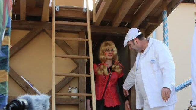 Bis ins nächste Dorf standen die Autos Schlange, schon um halb eins spazierten die Schaulustige gen Reckendorf... Familie Strohmer war zum Beispiel aus Stadelhofen angereist, um das Wunder der Verjüngungskur hautnah zu erleben. Und sie hatten Glück: Direkt vor ihren Augen wurde eine der umtriebigen alten Weiber von den Müllersburschen eingefangen. Ratternd und knatternd und Knochen ausspuckend, umgibt die Altweibermühle wohl ein ganz besonders kurioses Geheimnis: Es ist ein reines Männertheater, was da alle zehn Jahre aufgeführt wird.