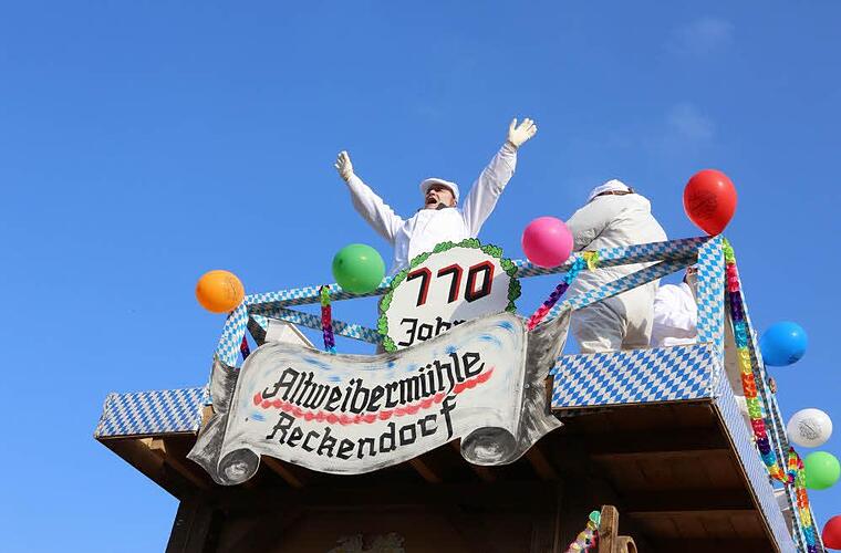 In Reckendorf erlebten an die 10 000 Besucher einen Umzug, der gut zwei Stunden dauerte. Das Mühlen-Spektakel war zwar sehenswert, doch ging es deshalb auch nicht so zügig voran.