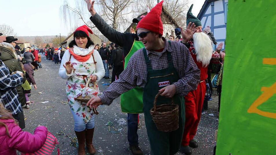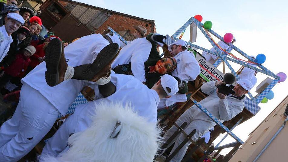 Ob Clowns, Hexen oder Prinzenpaare - die Blicke blieben beim Umzug in Reckendorf nicht nur an der Altweibermühle hängen. Aber der traditionelle Mühlenwagen, den es so nur ein einziges Mal in Nordbayern gibt, ist wohl ausschlaggebend dafür, dass an die 10 000 Faschingsbegeisterte nach Reckendorf kommen. Wie viele genau, konnten die Helfer gestern selbst noch nicht sagen.