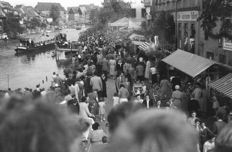 Die Sandkerwa hat begonnen: Das Fest, das man in Bamberg seit Beginn der 50er-Jahre zelebriert. Ein Anlass, zurückzublicken: ins Jahr 1954, als die 600-Jahr-Feier der Elisabethenkirche im Blickpunkt stand und Menschenmassen in den Sand pilgern ließ. "Gewaltig" war demnach der Bierkonsum.