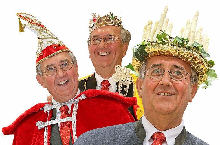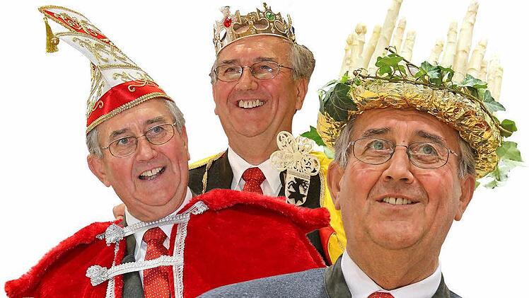 Genussbotschafterin Renate Ott und Spargelprinzessin Daniela I. setzten ihrem scheidenden Bürgermeister denn eine ganz besondere Krone auf: Eine aus Spargelstängeln. Dazu bekam er einen Reichsapfel mit Spargel-Kreuz und ein fast mannshohes Zepter aus dicken Spargelstangen in die Hand.