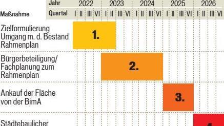 Auf Antrag der CSU-Fraktion hat Lang im Konversionssenat erstmals den Zeitplan vorgestellt, wie sich die Stadt die Übernahme vorstellt. Diese Liste beginnt 2021 und endet 2026 mit einem städtebaulichen Wettbewerb. Neu ist: Nächstes Jahre soll eine Sondersitzung zur Zukunft der AEO stattfinden. Welche Ziele hat die Stadt?