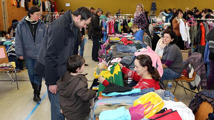 Zwei Turnhallen, säckeweise Klamotten und Geld für Nepal und Indien: Beim "Regenbogenbasar" in Zapfendorf kauften Eltern getragene Kinderkleidung fürs Frühjahr. Der Erlös aus der Tischgebühr geht an ein wohltätiges Projekt. Infranken.de hat sich stellvertretend für andere Basare im Landkreis in Zapfendorf umgeschaut.