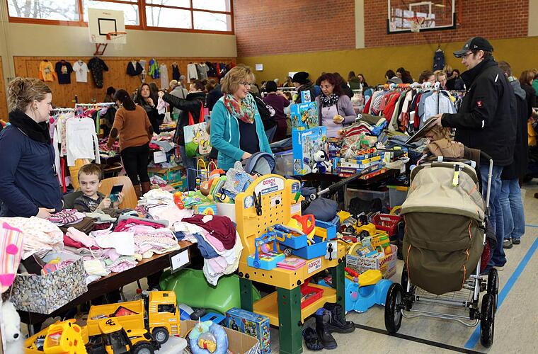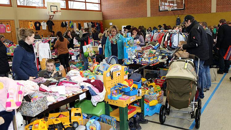 Soweit zu kommen, war nicht einfach: Der Andrang an verkaufswilligen Eltern ist groß, jedes Jahr losen die Veranstalter unter den Bewerbern die Teilnehmer aus. In der großen Turnhalle stehen rund 31 Tischplätze zur Verfügung, in der kleinen etwa 24. "Wir könnten eine dritte Turnhalle auch noch gebrauchen. Aber es langt, noch mehr brauchen wir nicht", sagt Isolde Böhm.