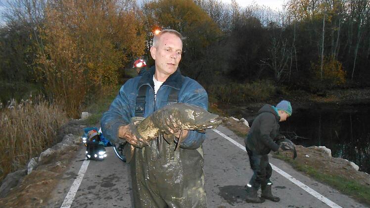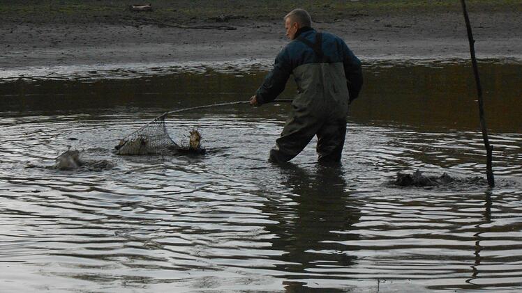 Entsprechend habe er stattdessen den Kontakt mit dem zuständigen Pächter, dem LBV, gesucht. Beide standen auch mit Sportfischern in Kontakt. Schließlich wurde der LBV aktiv: Am Montag kam Thomas Stahl, Teichbesitzer und zweiter Vorsitzender des LBV Bamberg, mit einem großen Netz und fischte ab. Unterstützt wurde er dabei von Anwohner Rusche. "Der Herr Stahl war ganz überrascht, wie schnell das Netz immer wieder voll wurde", erzählt Rusche. Etwa 100 Fische, vor allem Hechte, Karauschen und Rotaugen, holte Stahl aus dem Gewässer und brachte sie in seinen eigenen Weiher.