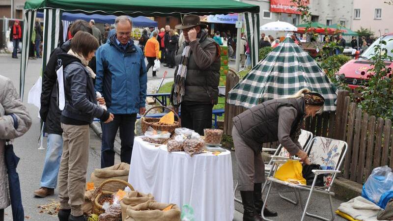 Vom Unterdorf den Burgweg hinauf ins Oberdorf und zurück über die Hauptstraße zum Festplatz, dafür haben Martina Zieroff-Huber, Tochter Eva und Mann Klaus Huber aus Trabelsdorf mehr als eine Stunde gebraucht. Nun steht die Stärkung an, auf die sich die geübten Kreisapfelmarktbesucher  freuen: eine würzige Kürbissuppe mit Apfelbrot, als Zwischengang eine herzhafte Apfelsuppe mit Kürbisbrot und als Dessert die auch von der bayerischen Staatssekretärin Melanie Huml (CSU)  bei der Eröffnung des 13. Kreisapfelmarktes gelobten Apfelkrapfen des Obst- und Gartenbauvereins Lisberg. Das Geheimnis des guten Geschmacks verrät Zweiter Vorsitzender  Lothar Beck. Es sei die Apfelsorte Rubin Star, die es jedoch nicht im Supermarkt, sondern beim Obstbauern der Nachbargemeinde Trabelsdorf gibt. Regional eben. Und das gefällt auch Martina Zieroff-Huber.