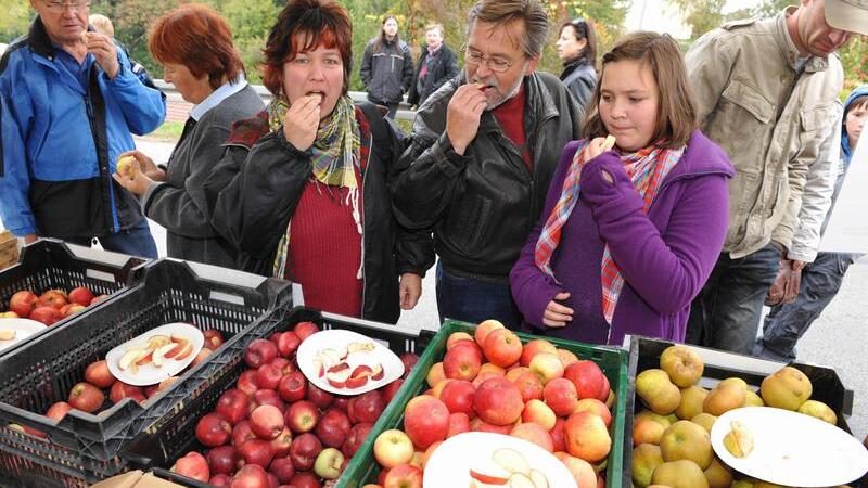 Bereits zum 13. Mal hat der Kreisverband für Gartenbau und Landespflege zusammen mit dem Landratsamt Bamberg den Markt organisiert, diesmal mit und in der Gemeinde Lisberg. Im Vordergrund steht die große Vielfalt der heimischen Obstsorten auf den Streuobstwiesen des Landkreises. Zur Ansicht ausgestellt hat der Kreisverband 16 Birnen- und 57 Apfelsorten mit so wohlklingenden Namen wie Pingo oder Kanadarenette, Remo oder Roter Hauptmann, oder der seit 1565 bekannte Königliche Kurzstiel.