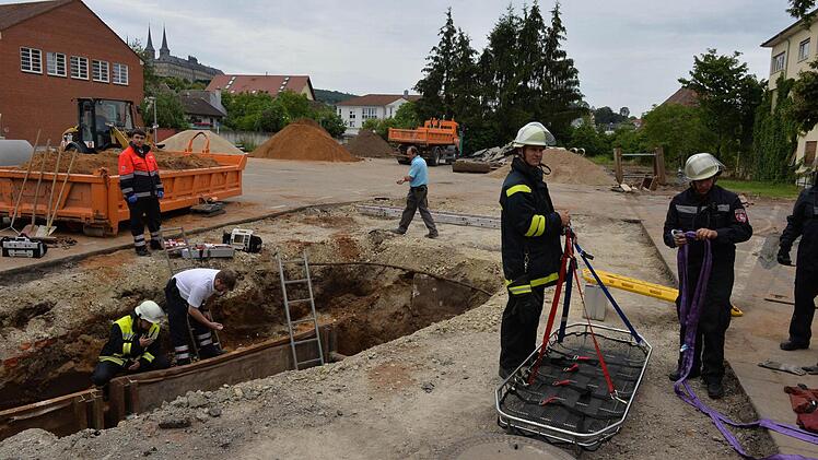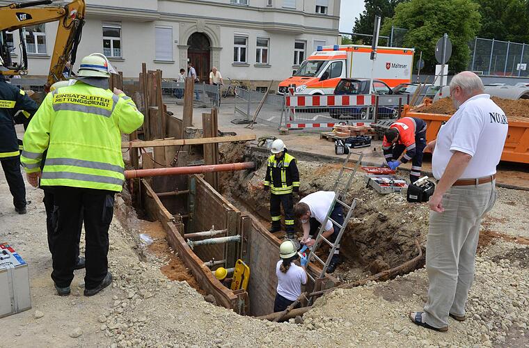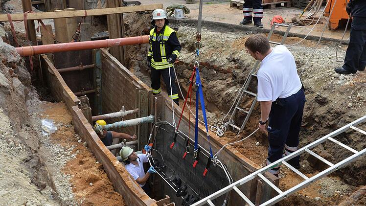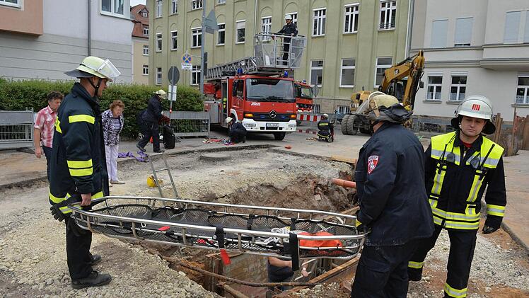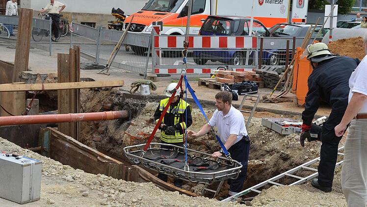 Den Verlauf der Rettungsaktion erklärt Stadtbrandrat Matthias Moyano, der vor Ort war, folgendermaßen: "Die Feuerwehr hat eine Trage in die Grube hinabgelassen und den Verletzten mit Hilfe der Drehleiter nach oben gezogen." Der Mann wurde dem Rettungsdienst übergeben und ins Klinikum gebracht. Die Feuerwehr war um 10.12 Uhr alarmiert worden, nach etwa zwanzig Minuten war der Einsatz beendet.