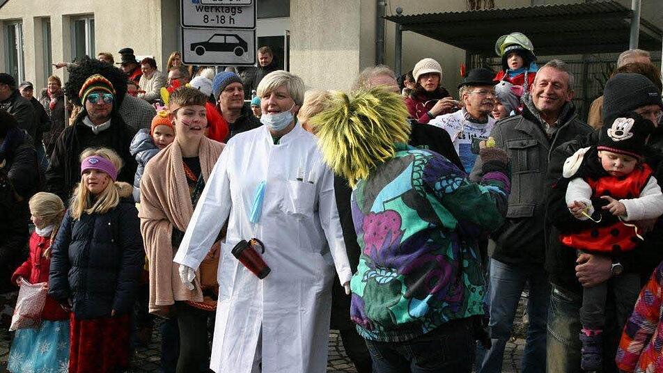 Mit Witz und Hintersinn Was das alles soll? Nicht jeder, der da in Fünfer-Reihen Spalier stand, dürfte den Witz und Hintersinn erkannt haben, mit dem fleißige und tüchtige Wagenbauer, Schildermaler und Kostümbildner die Highlights des Hirschaider Faschingsumzugs bestückt hatten.