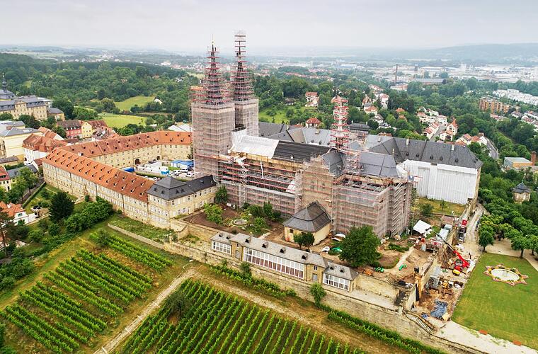 So einzigartig wie die Klosterlandschaft auf dem Michaelsberg ist mit ihrer über tausendjährigen Geschichte, Architektur und ihren Gartenanlagen, so beispiellos zeigt sich das für Bamberg derzeit größte Projekt. Nämlich die komplette Sanierung der Anlage, die Ausmaße hat wie zusammen zwölf Fußballfelder. Sagenhafte 80 Millionen Euro verschlingen die notwendigen Arbeiten am Kernbestand des Unesco-Weltkulturerbes Bamberg. Nun ist auf dieser gigantischen Baustelle Halbzeit nach zehn Jahren umfassender Maßnahmen, in weiteren zehn Jahren, also 2029, wird der letzte Handwerker abziehen können. Zum "Bergfest" lädt daher die Bürgerspitalstiftung als Eigentümerin des Klosterkomplexes am kommenden Samstag und Sonntag ein - ganz nach dem Motto: "Die nächsten 1000 Jahre beginnen jetzt".