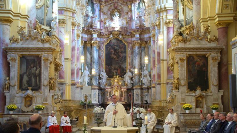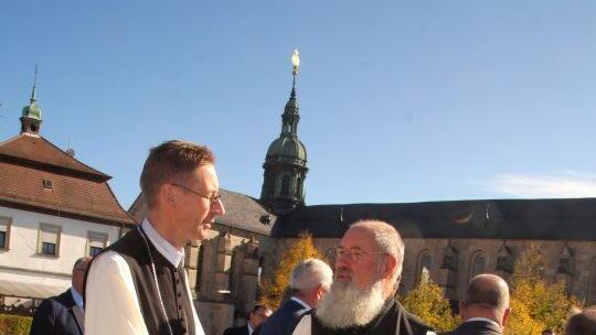 Wissenschafts- und Kunstminister Bernd Sibler gestand, dass er ebenso wie Abt Philipp das erste Mal in Ebrach sei, dass es aber hier wunderschön sei. Deutschland liege in der Mitte von Kerneuropa und habe eine besondere Verantwortung. Dann kam Sibler auf die Brexitbefürworter zu sprechen. Er zeigte sich erschüttert, dass sie bei der Konstituierung des Europaparlaments bei der Hymne dem Präsidium den Rücken gekehrt hätten. "Das sind Dinge, die mir als Wissenschafts- und Kunstminister wehtun", sagte er und fuhr weiter: "Ohne die großen Universitäten Oxford, Cambridge und London kann man sich Europa nicht vorstellen."
