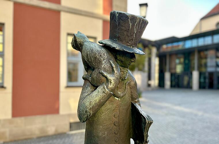 1808 kam E.T.A. Hoffmann als Musikdirektor ans Bamberger Theater. Zum 250. Geburtstag des Künstlers feiert dasETA Hoffmann Theater seinen Namensgeber. Im Bamberger Stadtbild ist Hoffmann an vielen Stellen präsent: Skulpturen seiner Figuren, Gedenktafeln, künstlerisch gestaltete Kanaldeckel und sein ehemaliges Wohnhaus erinnern an sein Wirken.