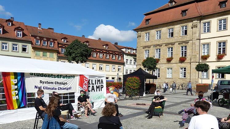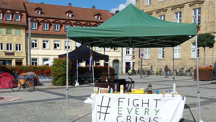 Die Gemeinschaft sitzt hier nicht zum Zeitvertreib: Am Freitag, 25. September, startete im Anschluss an die "Fridays for Future"-Demo das sogenannte Klimacamp. Die Aktivisten wollen auf diese Weise Druck auf die Politik der Stadt und dem Landkreis Bamberg ausüben, um so den Klimaschutz vor Ort in den Fokus zu rücken.