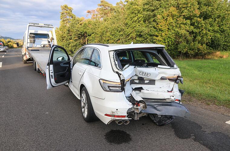 Für die Unfallaufnahme und die Aufräumarbeiten war die B22 zwischen Debring und Birkach komplett gesperrt. Bei dem Unfall wurden zwei Menschen leicht verletzt.