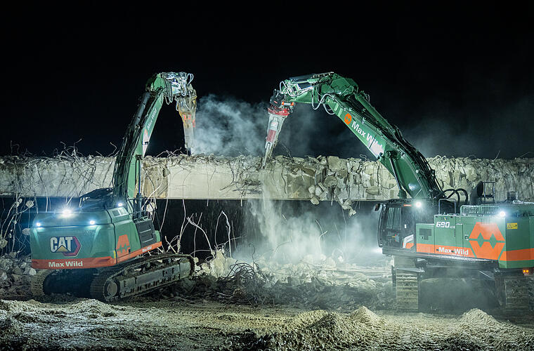 Mit dem Abriss des 150 Meter langen Bauwerks war die Firma Max Wild beauftragt. Insgesamt kamen sieben Bagger mit einem Gewicht von 40 bis 75 Tonnen zum Einsatz, um die Brücke in Einzelteilen abzutragen. Dabei wurden rund 1.800 Kubikmeter Baumaterial bewegt. Der Abriss lief planmäßig: Von der Brücke war pünktlich zum Sonnenaufgang nichts mehr zu sehen. Max Fus, Oberbauleiter für den Brückenabriss, nannte die Aktion in einem Interview gegenüber News5 eine "neue Herausforderung." Sie würden zwar das ganze Jahr zwar über Brücken abbrechen, aber jede Brücke sei anders.