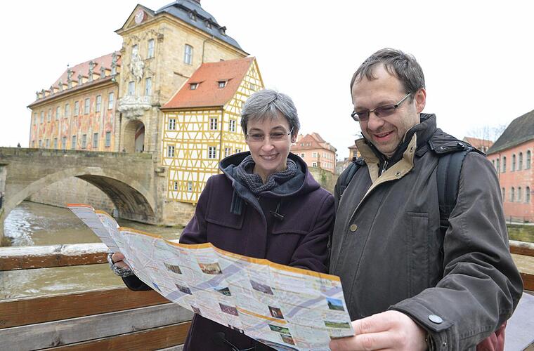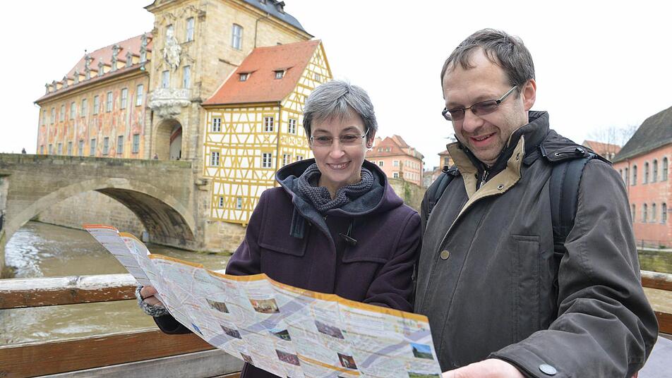 Nicht im Grüppchen draußen vor der Tür, sondern im Eingangsbereich der Touristinformation sitzen Thea Bastian und Andreas Buchter. Die beiden Pforzheimer möchten sich auch "faszinieren" lassen. Zu Weihnachten haben sie sich eine Städtereise nach Bamberg geschenkt und gleich kurz nach den Feiertagen eingelöst.