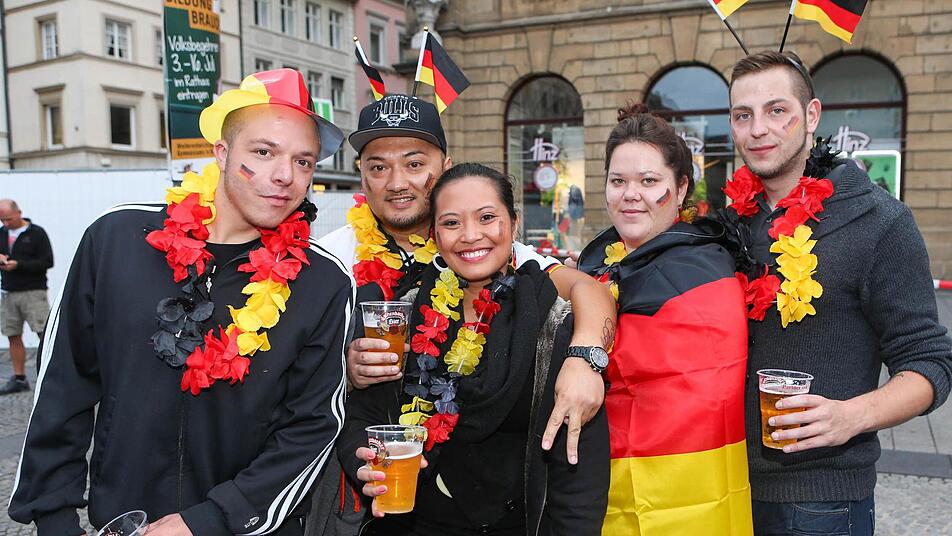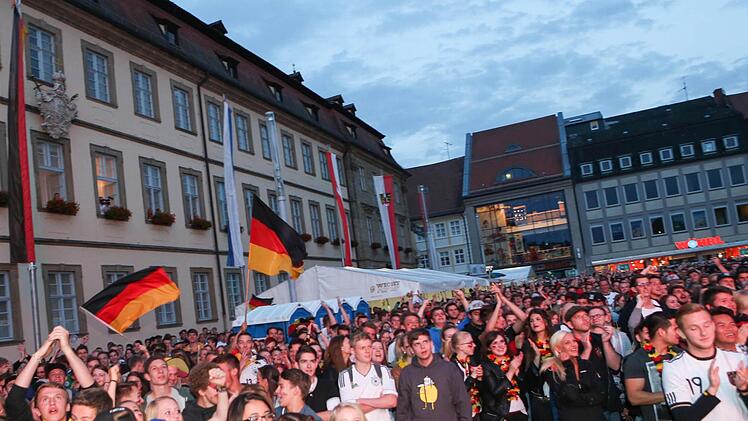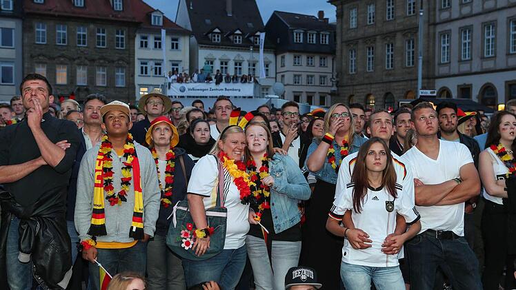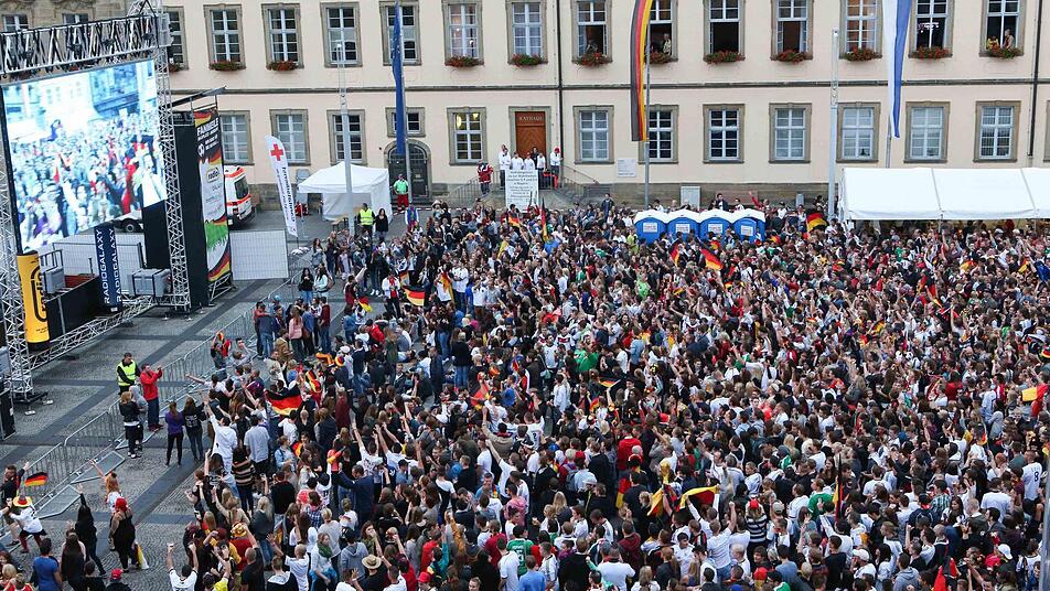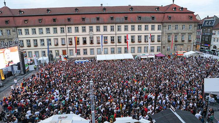 Weltmeisterlich hielten sich aber auch die Bamberger Fans, die dunklen Gewitterwolken und Regen-Prognosen trotzten. Nahezu greifbar war die Spannung auf der Fanmeile nach all den Wochen des Bangens schon in der ersten und schließlich zweiten Halbzeit. Alle fieberten dem entscheidenden Tor entgegen, das erst in der Verlängerung fiel.