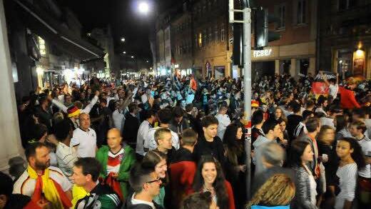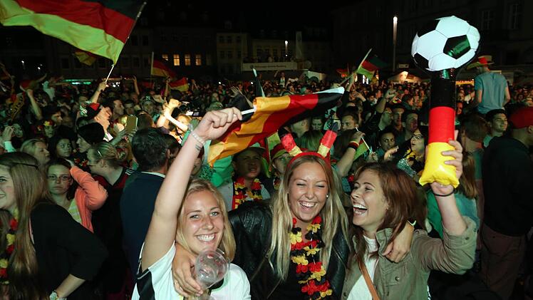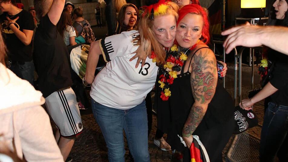 Jubel ohne Ende: Wir sind Weltmeister! Rund 5000 Fußball-Enthusiasten verfolgten auf Bambergs Fanmeile das nervenzerreißende Finale und feierten endlich ausgelassen den Triumph.