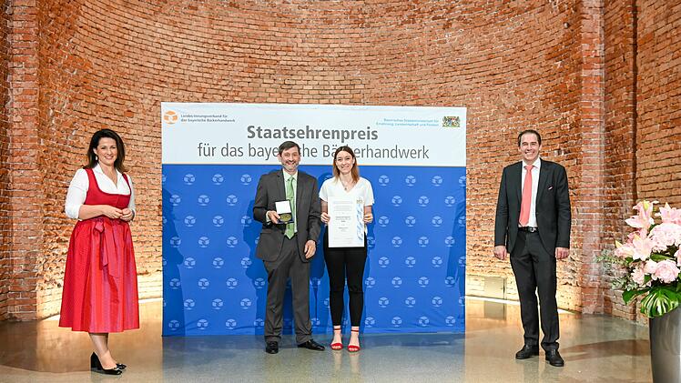 '"Der Preis für echten Fleiß", freut sich die Bäckerei Schmitt auf Facebook. Für herausragende Leistung habe man den Staatsehrenpreis erhalten: "Wir sind überwältigt und freuen uns über diesen Team-Erfolg." Sobald es wieder möglich sei, wolle man den Titel feiern, den alle Bäckereien am Montag (28. Juni 2021) von Landwirtschaftsministerin Michaela Kalb überreicht bekommen haben.
