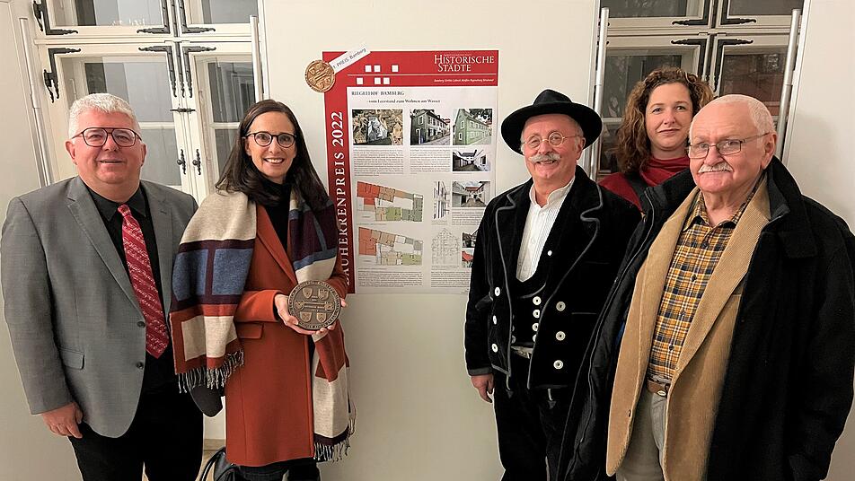 Wie die Stadt Bamberg berichtet, war die „Sanierung des Riegelhofs“ als Bamberger Sieger des Bauherrenpreises 2022 der Arbeitsgemeinschaft Historische Städte hervorgegangen. Doch gewonnen hätten eigentlich alle Bamberger Wettbewerbsbeiträge, die verantwortlichen Bauherren, Architektenbüros, die Bewohner der sanierten Gebäude und die ganze Stadtgesellschaft. In einer Plakatausstellung im Foyer des Rathauses Maxplatz werden jetzt bis einschließlich 16. Dezember die insgesamt 11 Sanierungsobjekte, die für den diesjährigen Bauherrenpreis eingereicht wurden, der interessierten Öffentlichkeit präsentiert.