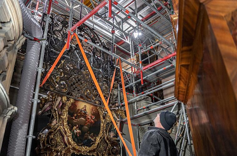 "Zur Erinnerung: Die Schäden in und an der Kirche wurden im November 2012 für jeden offenkundig, als faustgroße Putzbrocken aus dem einmaligen Deckengemälde, dem „Himmelsgarten“, fielen und die beliebte Kirche seitdem geschlossen bleiben musste. Nun wird die gesamte Raumschale, die Natursteinböden, -Treppen und Epitaphen sowie die gesamte barocke Ausstattung mit Altären, Gemälden, Skulpturen und Orgel restauriert", schreibt die Stadt.