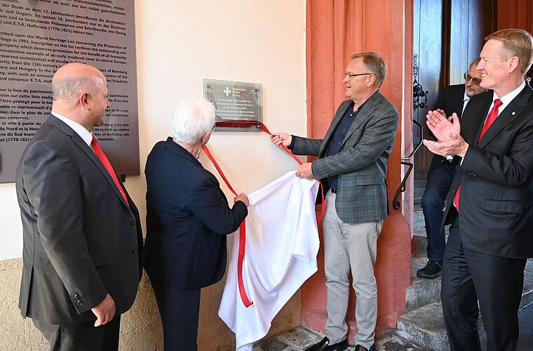 Der Dachverband des Deutschen Roten Kreuzes war geboren.Wie die Stadt Bamberg jetzt mitteilt, hat Oberbürgermeister Andreas Starke nun gemeinsam mit der Präsidentin des Deutschen Roten Kreuzes, Gerda Hasselfeldt, eine Tafel zur Erinnerung an die Gründung neben dem Eingang zum Alten Rathaus enthüllt.