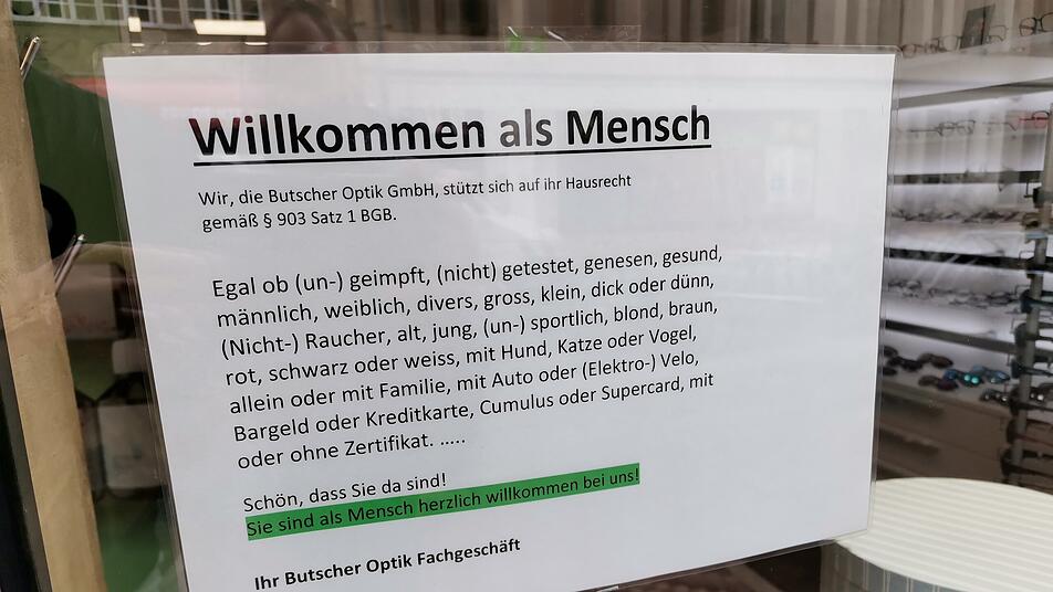 Gerade auf Kundenseite sei die Verunsicherung seit dem Pandemie-Beginn allgegenwärtig zu spüren gewesen, konstatiert der Bamberger Optiker. "Ich kann niemanden zwingen, sich impfen zu lassen", betont er. "Bei uns rufen noch immer viele Kunden an und fragen, ob sie überhaupt noch den Laden betreten dürfen." Aus diesem Grund wolle man mit dem Aushang nun gewissermaßen "eine Brücke schlagen" - als Zeichen des gesellschaftlichen Miteinanders.