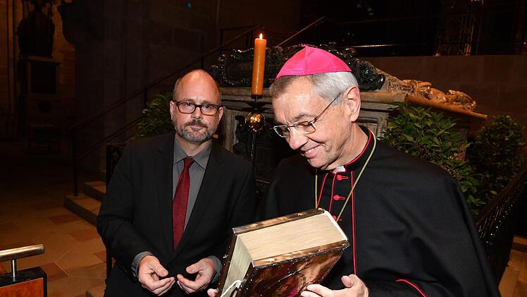 Was macht nun Erzbischof Schick mit seinem kostbaren Faksimile? Wird er es auf seinen Nachtisch legen? Unsere Zeitung fragte ihn einfach. "Ich nehme es erst einmal mit nach Hause zum Betrachten", antwortete der Erzbischof. Und dann werde er es ins Diözesanmuseum geben, damit es die Öffentlichkeit zu sehen bekäme.