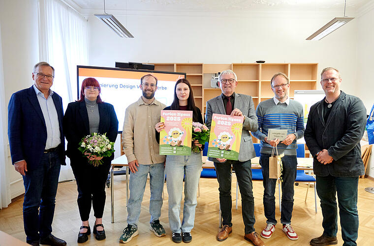 Die optische Identität des neuen Ferienangebots wurde von den angehenden Mediengestalter:innen der Staatlichen Berufsschule II Bamberg entwickelt. Das im Kollektiv von der gesamten Klasse mit der betreuenden Lehrkraft Johannes Müller entworfene Logo für den Ferienpass überzeugte eine fachkundige Jury am meisten. Außerdem kürte diese noch Jule Bergmann (Design Ferienpass) und Alexandra Schmidt (Logo Ferienportal) zu Gewinnerinnen bei dem Design-Wettbewerb. Die Arbeiten waren in Hinblick auf Kreativität, Nutzerfreundlichkeit und Regionalbezug beurteilt worden. Bei dem Termin im Rathaus am Maxplatz stellten die Schülerinnen und Schüler ihre Entwürfe persönlich vor, bevor sie Urkunden und kleine Präsente überreicht bekamen.