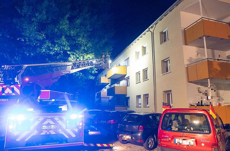 In Bamberg ist am frühen Sonntagmorgen (18. September) ein Feuer in einem Mehrfamilienhaus ausgebrochen. Die Feuerwehr rettete 11 in ihren Wohnungen eingeschlossene Bewohner über die Drehleiter.