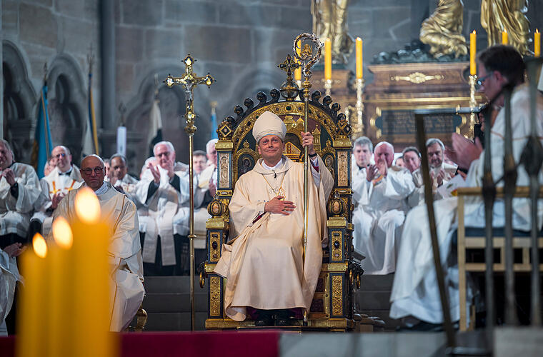 Der in München geborene und in Nürnberg aufgewachsene Gössl, zuletzt zehn Jahre Weihbischof in Bamberg, war Ende des Vorjahres von Papst Franziskus zum neuen Erzbischof der fränkischen Erzdiözese ernannt worden. Im Gottesdienst nun wurde die Ernennungsurkunde vorgelesen, sein Vorgänger Ludwig Schick überreichte ihm den Bischofsstab - und Gössl nahm auf dem Bischofsstuhl Platz.