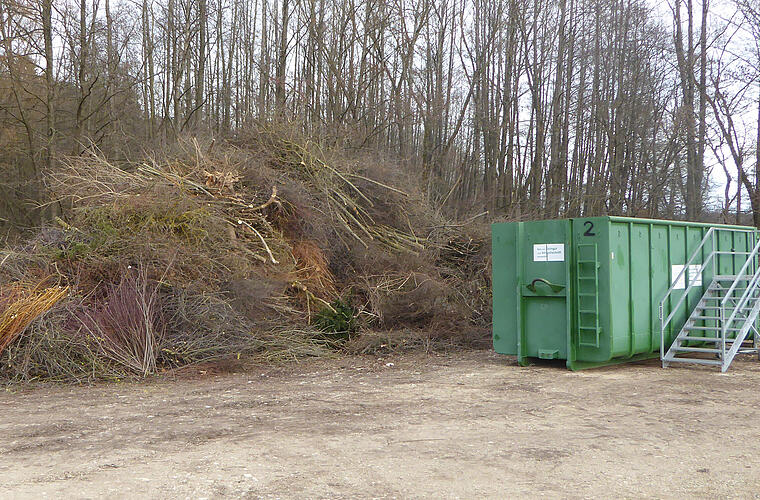 - Äste bzw. andere holzige Grünabfälle werden separat gelagert, die maximale Anliefermenge beträgt 2 m³ pro Öffnungstag.