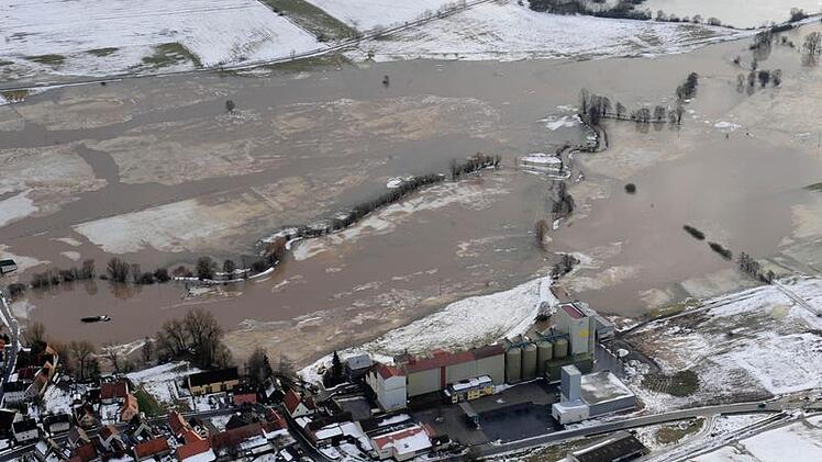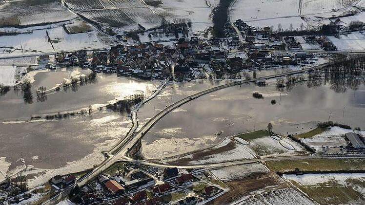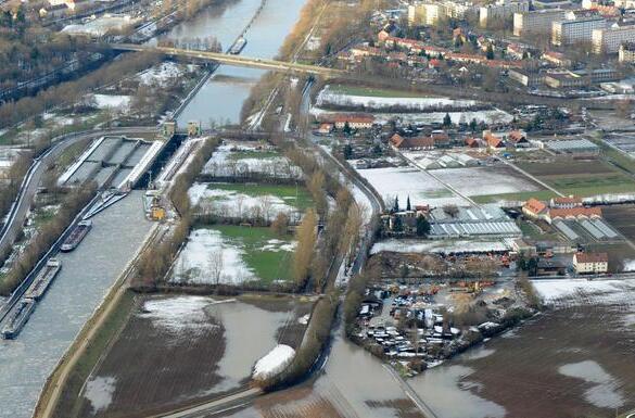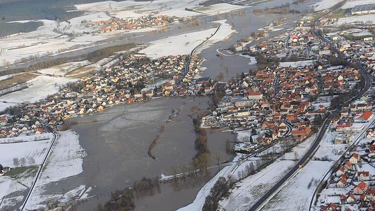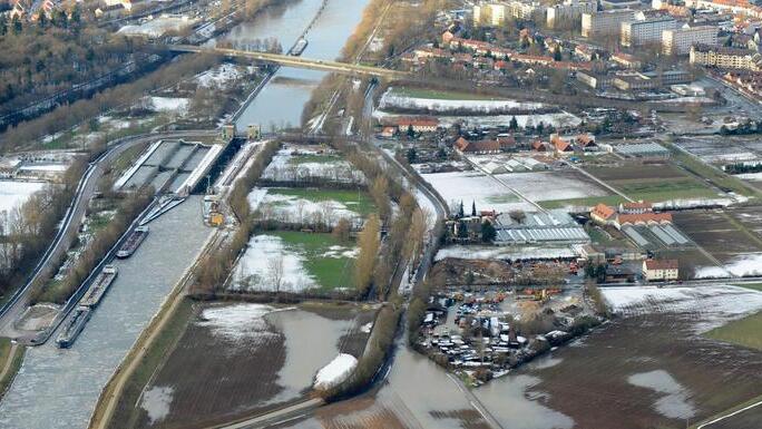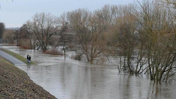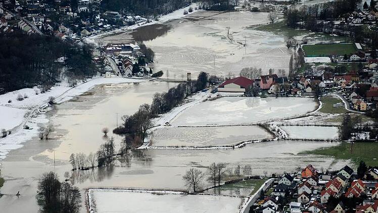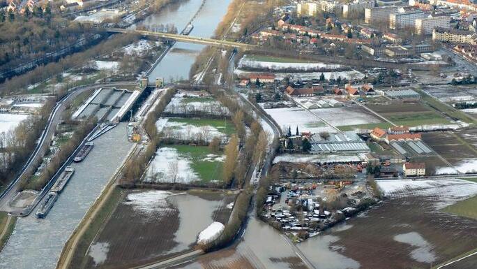 Auch hinter Bischberg wurde am Sonntag die Hochwassermeldestufe 3 überschritten. Der für die Mainschifffahrt wichtige Pegel Trunstadt stieg auf über 6,30 Meter. Schon ab 3,40 Meter wird auf dem Main die Schifffahrt eingestellt