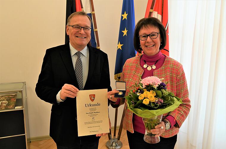 Es war ein außergewöhnliches Dienstjubiläum, zu dem Oberbürgermeister Andreas Starke gratulierte: Oberverwaltungsrätin Brigitte Riegelbauer ist seit vier Jahrzehnten im Dienst, wie die Stadt Bamberg erklärt.