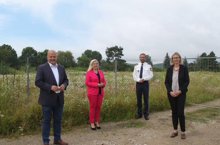 Gemeinsam mit ihrem Abgeordnetenkollegen Holger Dremel setzt sie sich für eine zügige Realisierung ein. „Die Pandemie hat uns im Zeitplan leider etwas zurückgeworfen, weil viele Kräfte anderweitig gebunden waren. Umso wichtiger ist, dieses Großprojekt jetzt mit Hochdruck voranzubringen“, betont Dremel. Die beiden Abgeordneten haben sich deshalb am neuen Standort, ein brachliegendes Grundstück im Süden Bambergs, mit Polizeipräsident Alfons Schieder und Baudirektorin Katrin Roth vom Staatlichen Bauamt Bamberg getroffen.
