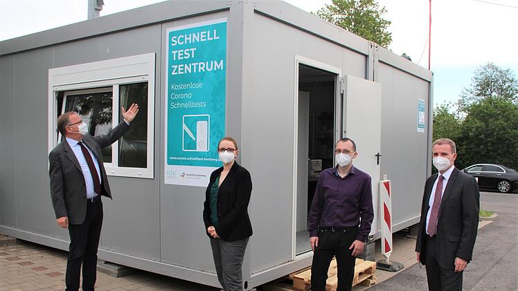 „Gerade für die Bewohner der südlichen Stadtteile und Besucher aus dem Umland ist dieser Standort am Heinrichsdamm ideal. Damit haben wir die Infrastruktur unserer Schnelltestzentren um einen weiteren wichtigen Baustein erweitert“, sagte Bambergs Oberbürgermeister Andreas Starke beim Ortstermin. Starke erläuterte dabei auch den großen Vorteil der neuen Teststation: Es müsse vorher kein Termin vereinbart werden. „Wir wollen es den Menschen so einfach wie möglich machen, einen Schnelltest vornehmen zu können“, so Starke.
