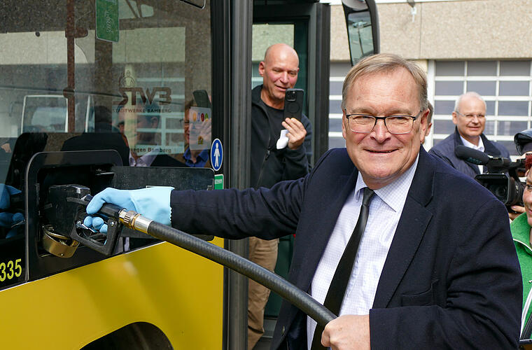 Der Bus klingt wie jeder andere auch, er fährt wie jeder andere auch. Und er riecht auch nicht anders als sonst – obwohl es naheliegend wäre: Denn der Linienbus, der am Dienstagvormittag in Bamberg am Busdepot der Stadtwerke vom Hof fährt, wird nicht mehr mit konventionellem Dieselkraftstoff angetrieben, sondern mit hydrierten Pflanzenölen. Wie die Stadtwerke Bamberg erklären, heißt der Kraftstoff HVO100 und hat die gleichen chemischen Eigenschaften wie Diesel. Entscheidend ist, dass er bilanziell rund 90 Prozent weniger CO2-Emissionen freisetzt und die Klimabilanz der vorhandenen Busflotte augenblicklich und ohne weitere Investitionen optimiert. Für die Stadtwerke ist das eine "zweckmäßige Zwischenlösung für den Klimaschutz", bis sie ihre komplette Busflotte elektrisch und damit komplett emissionsfrei antreiben werden.
