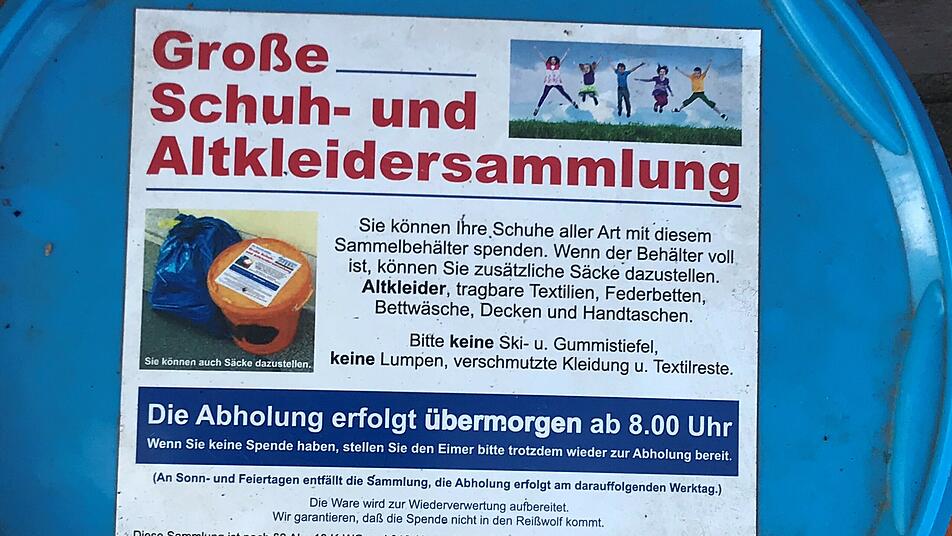 Die Sammlung wird demnach von der Lichtenfelser Firma Pagitex durchgeführt. "Die Ware wird zur Wiederverwertung aufbereitet. Wir garantieren, dass die Spende nicht in den Reißwolf kommt", lautet das Versprechen auf dem Deckel der Plastikbehälter. Doch ist eine solche Aktion wirklich seriös? Und: Wem kommen die Spenden überhaupt zugute?