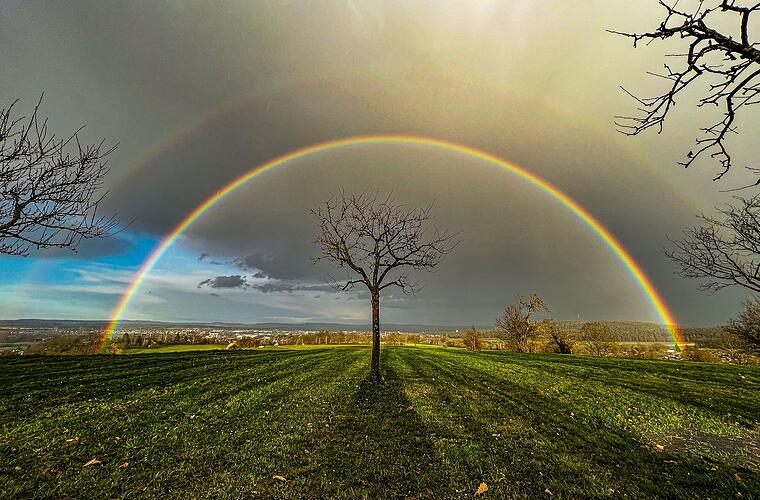 Das Wetter in Franken ist momentan alles andere als ruhig. Bis zum Sonntag (2. April 223) läuft eine Hochwasserwarnung im Landkreis Bamberg. Am Donnerstag (30. März 2023) konnten Menschen, die zur richtigen Zeit am richtigen Ort waren, intensive Regenbögen in Bamberg und Umgebung vorfinden.