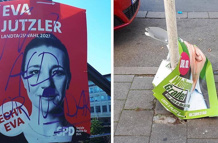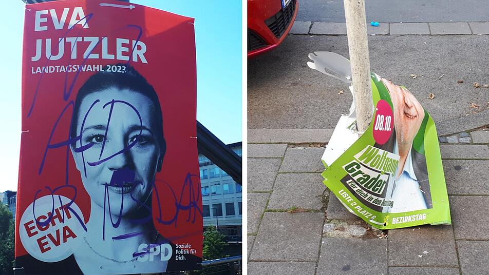 Vandalen in Bamberg haben die Wahlplakate mehrerer Parteien zur bevorstehenden Landtagswahl zerstört und teils mit rechtsextremen Parolen bekritzelt. Grüne und SPD sehen eine Grenze überschritten.