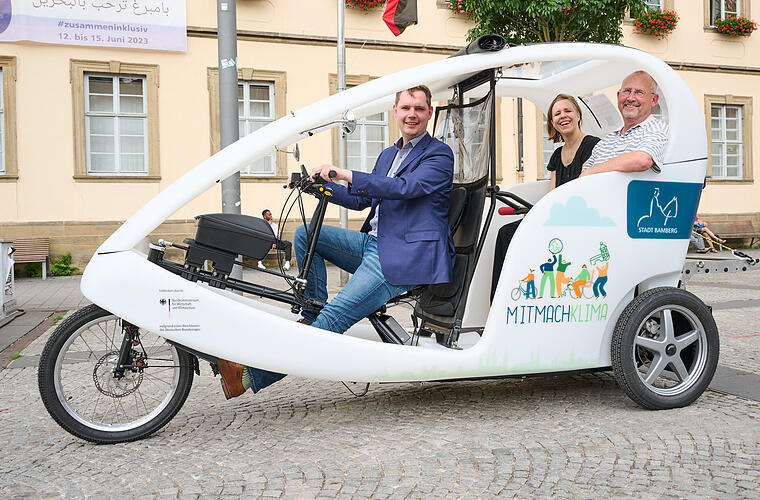 Wer sich gerne mal mit einer Rikscha durch die Stadt kutschieren lassen möchte, der hat jetzt die Möglichkeit dazu: Im Rahmen des Projekts MitMachKlima hat die Stadtverwaltung eine Fahrradrikscha mit Elektromotor angeschafft, die künftig in Bambergs Stadtteilen zum Einsatz kommt. Das berichtet die Stadt Bamberg in einer Pressemitteilung.