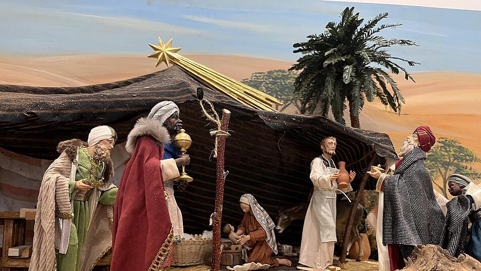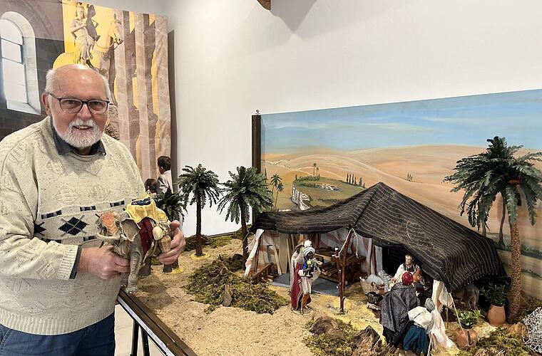 Doch nicht nur die Könige haben den Weg zur Krippe gefunden: Auch Kamele und sogar ein riesiger, schwerbeladener Elefant gehören zur Szenerie. Mit viel Liebe zum Detail hat Exner die rund 20 handgemachten Figuren arrangiert.
