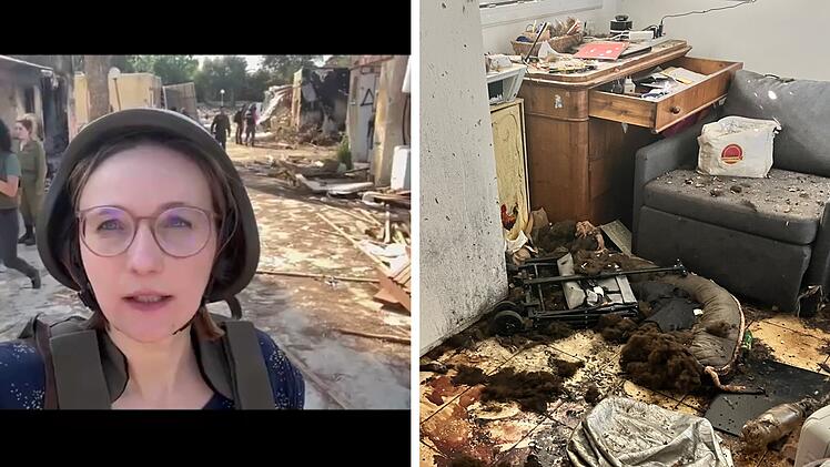 Der Kibbuz habe 700 Einwohner gehabt, "62 Leute wurden umgebracht, darunter auch viele Kinder", teilt sie inFranken.de mit. In einem vor Ort aufgenommenen Video fügt sie hinzu: "Wir können das schwer nachvollziehen, aber ich glaube, die total zerstörten Häuser mit den Einschusslöchern geben einen Eindruck davon, was sich hier am 7. Oktober abgespielt hat." Badum betrat Häuser mit zerwühlter und zerstörter Einrichtung und Blutspuren, wie ihre Bilder eindrücklich zeigen. 17 Menschen würden zudem noch immer als Geiseln gehalten (Stand: 2. November 2023).