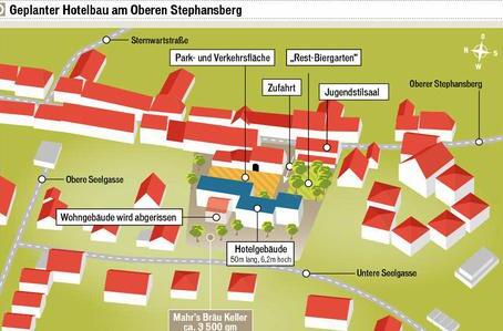 Lange Zeit sah es so aus, als ob die Bamberger Bevölkerung wenig Anteil nähme am Schicksal des Mahrsbräu-Kellers am Oberen Stephansberg. Doch dem ist nicht so. Die Pläne, mitten auf dem 3500 Quadratmeter großen Areal eines Traditionsbiergartens ein Gästehaus mit 22 Zimmern zu bauen, haben im Zuge des Beteiligungsverfahrens eine Flut von Einwänden ausgelöst.