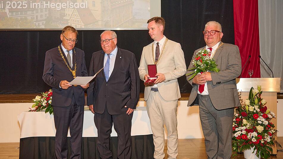 Mit der Bamberger Stadtmedaille werden demnach seit 1989 Persönlichkeiten geehrt, die "allgemeines Ansehen genießen und sich durch besondere Leistungen um das Wohl der Stadt und ihrer Bürgerinnen und Bürger besondere Verdienste erworben haben", so der Satzungstext für die Verleihung der Stadtmedaille. "Sie dient als Zeichen des Dankes, der persönlichen Wertschätzung und der öffentlichen Anerkennung", so Bambergs Oberbürgermeister Andreas Starke in seiner Laudatio. Der Stadtrat hatte in seiner Sitzung am 29. Januar 2025 die Aushändigung der Auszeichnung an acht Persönlichkeiten einstimmig beschlossen.