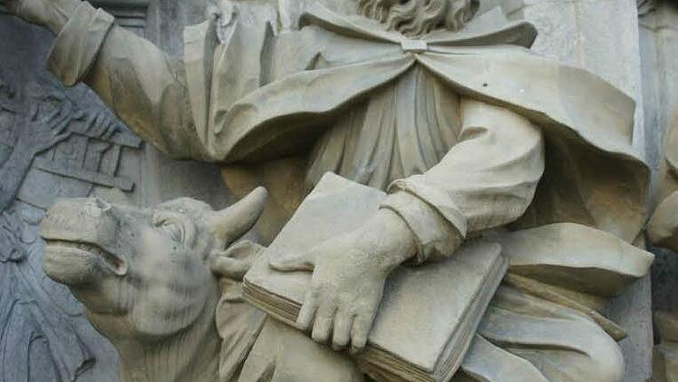 Neben Metzgern gab's damals noch Gerber, die sich der Häute der Tiere annahmen. Und Kammmacher, die die Hörner weiterverwerteten. "Die Knochen hat man in den Knochenmühlen zu Seife und Leim verarbeitet", berichtet Tatjana Jakob. Aber zurück zum Ochsen, "dem der Leidensweg seiner Artgenossen erspart blieb". Dafür raubte man ihm die Kindheit, wie das von Johann Adam Nickel gestaltete Tier in der Inschrift über dem Portal klagt: "Sogleich ein Ochs und nicht vorher ein Kalb zu sein, ist gegen die Natur.
