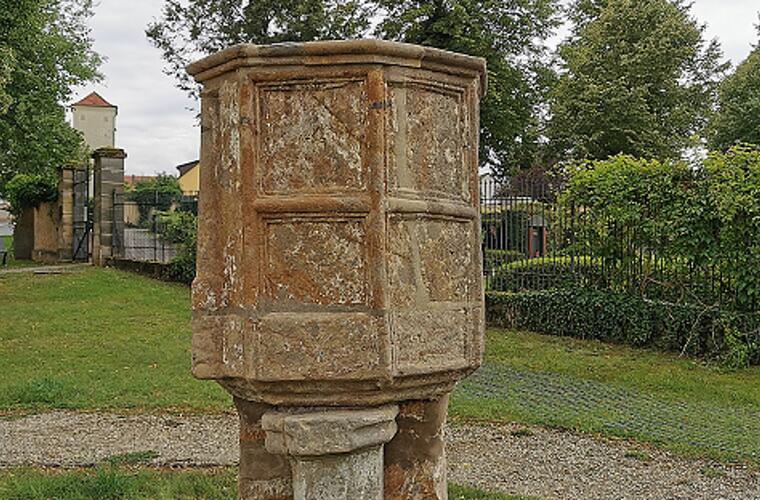 Die Freikanzel steht seit 1729 an der Magdalenenkapelle. Sie wurde damals wegen der Barockisierung der Stadtkirche St. Oswald abgebrochen und auf der Freifläche vor der Magdalenenkapelle durch den Baunacher Maurer Georg Peyer für einen Lohn von 2 Gulden 37 Kreuzer wiederaufgebaut.