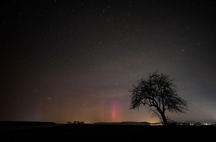 Wer Glück hatte, konnte schon an Neujahr Polarlichter über Franken beobachten. Im Oktober gelangen einem Fotografen zudem bei Ansbach spektakuläre Aufnahmen. Ausgelöst wird das Phänomen durch eine Sonneneruption, bei der Plasma ausgestoßen wird. Bewegen sich diese Teilchen in Richtung Erde, kommen sie etwa anderthalb bis drei Tage später am Planeten an. Das Magnetfeld schirmt die Erdoberfläche vom größten Teil der Teilchen ab. Doch ist der Sonnenwind besonders stark, können die Teilchen bis in die Erdatmosphäre vordringen. Dort regen die Teilchen die Luftmoleküle zum Leuchten an.