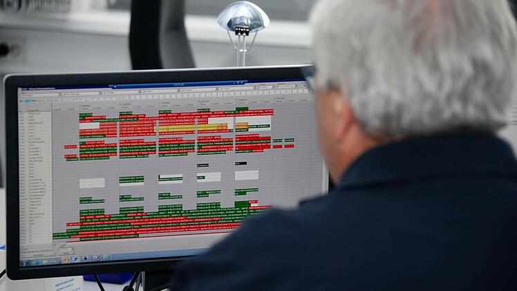Genau so ein ERP-Consultant ist Franz Glöckner, Mitarbeiter der Firma Esourceone in Hallstadt. Die bunten Balken auf seinem Computermonitor sind eine elektronische Plantafel, die ihm einen schnellen Überblick über Produktionsaufträge gibt.