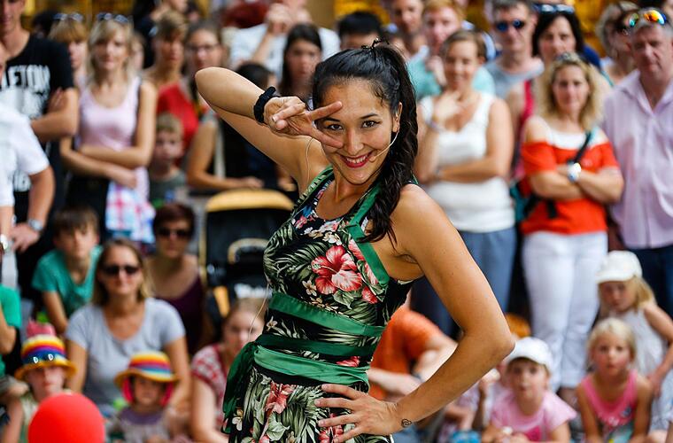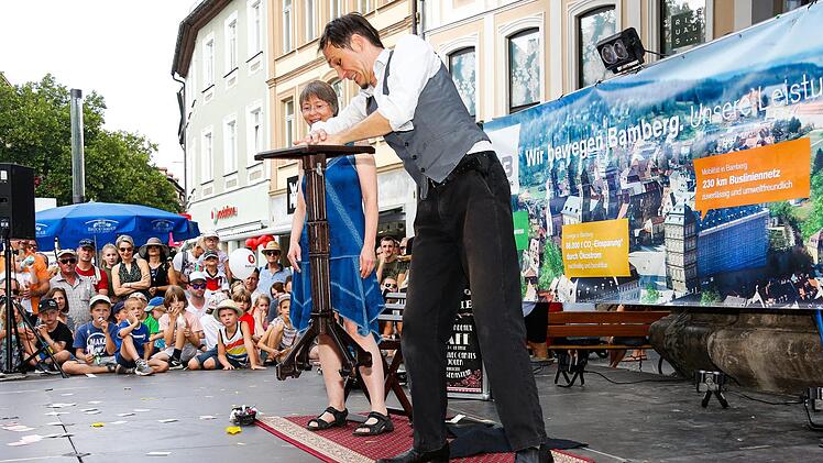 Mitten im Herzen der Stadt ist "Bamberg zaubert" voll im Gange. Bei bestem Wetter sind es vor allem Familien, die sich die über 100 Zaubershows und Künstler anschauen.
